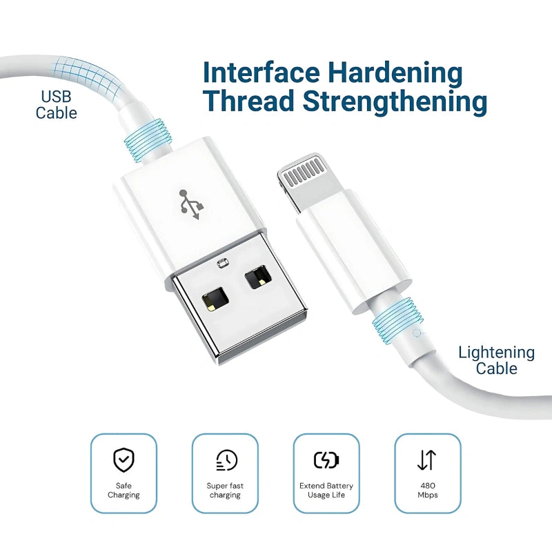 - Enjoy rapid charging and swift data synchronization with the advanced technology of our Lightning to USB cable. Capable of delivering up to 2.4A of current for efficient charging and up to 480Mbps data transfer speeds.