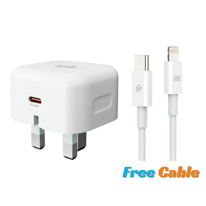 Foldable Type-C Charger - 20W PD Fast Charging Plug - Free Charging Cable