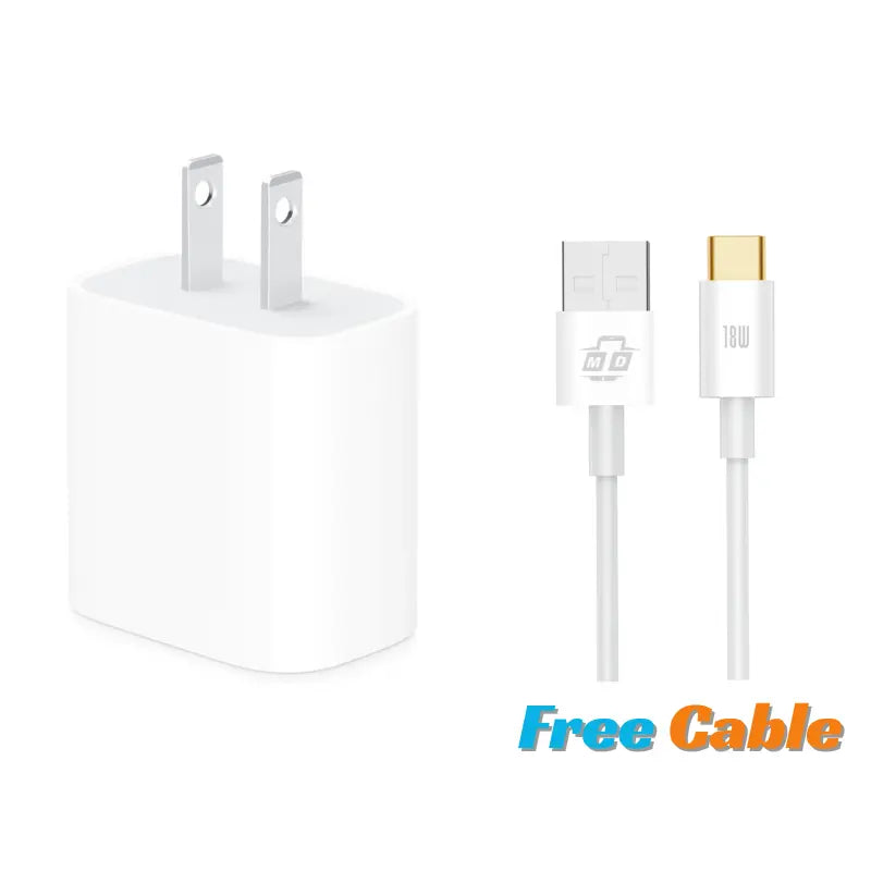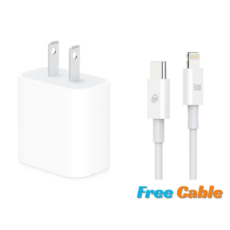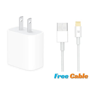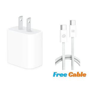 Apple Original USB-C Power Adapter 2 Pin Plug - 20W - Free Charging Cable